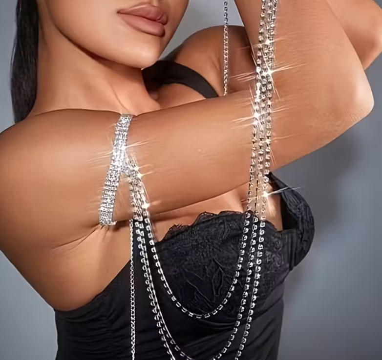 Elegant & Sexy Bling Rhinestone Tassel Arm Chain - Sparkling Synthetic Stones, Lightweight Versatile Jewelry for Women, Daily Wear & Beach Parties, Year-Round Accessory, Cowgirl Jewelry, Party Accessories, Sensual Style, Durable Clasp, Synthetic Rhinestones
