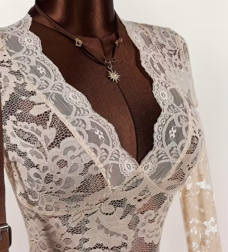 Lace Hollow-Out Floral Mesh lingerie dress - V-Neck