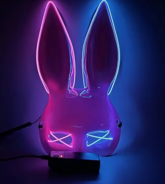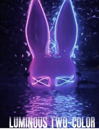 A Luminous Two-Color Rabbit Mask, with a Colorful Surface, Dual-Color Luminous Sexy Costume Props, Suitable for Parties, Balls, Cocktail Parties, Halloween Carnivals, And Easter Gifts, Can Be Worn at The Same Time.