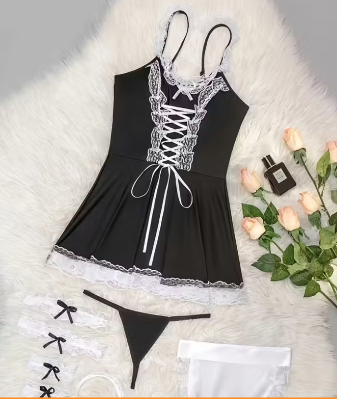 Sexy Cute Women's Maid Dress | Strappy Mini Skirt Cosplay Uniform.