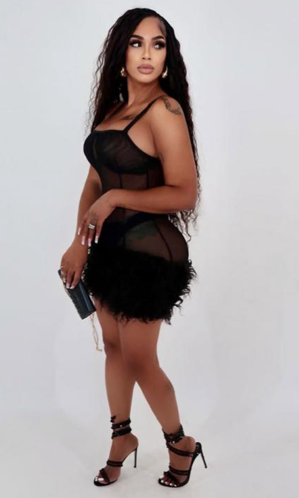 Fluff See Through Fitted Sleeveless Mini Dress.