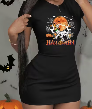 Disney • Elegant • Nightmare Before Christmas Dress • Women's Halloween Outfit • Jack Skellington & Sally Design • Short Sleeve Maxi • Officially Licensed • Machine Washable • Medium Stretch • Round Neck