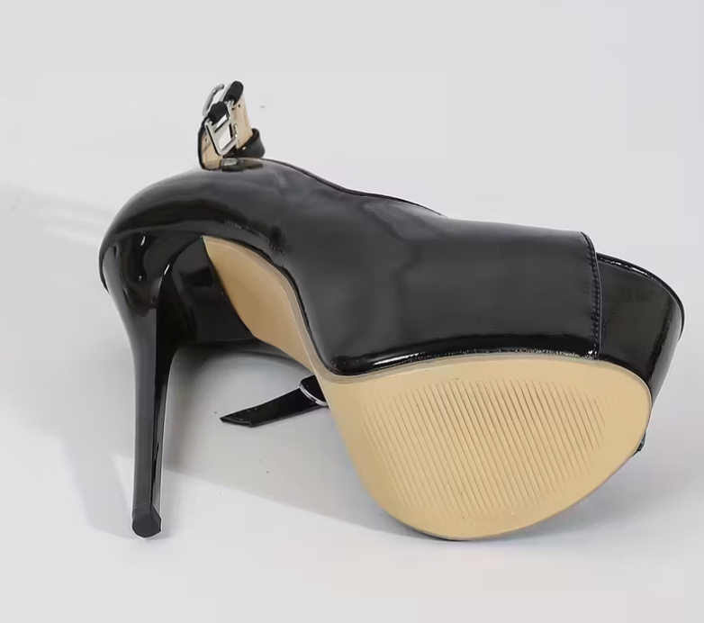 Women's Glossy Slip-On Comfort with Cushioned Insole & Ankle Strap, Ultra-High Synthetic Cover for All-Season Formal & Professional Wear, Versatile Fashion Shoe, Sleek Shoe Design, Durable Rubber Sole