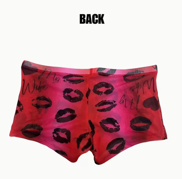 Men's Sexy Sheer Mesh Underwear, 'I Love My Wife' & Lip Print, Gradient Color, Comfortable Skin-Friendly Fabric, Knit Polyester 95%, Spandex 5%, Medium Stretch